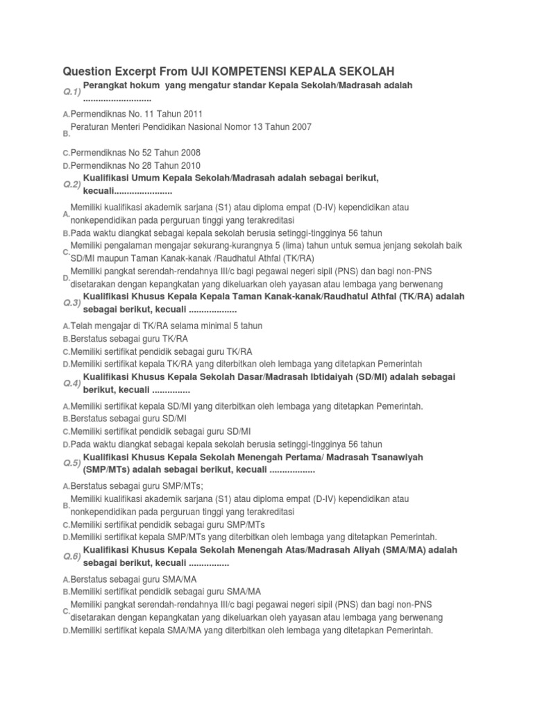 Permendikbud tersebut mewajibkan kepada kepala sekolah yang sudah menjabat sebelum diterbitkannya peraturan tersebut untuk mengikuti diklat penguatan dengan durasi 71 jam. 50 contoh soal cpnspppk 2019 seleksi kompetensi bidang skb. Soal diklat penguatan kepala sekolah dan kunci jawaban ( contoh dan latihan post test ). Latihan dan belajar contoh soal diklat penguatan kepala sekolah. Guru yang terus belajar dan mengembangkan diri bukan untuk kepala sekolah,tapi memang sejatinya setiap pendidik atau guru adalah pembelajar.